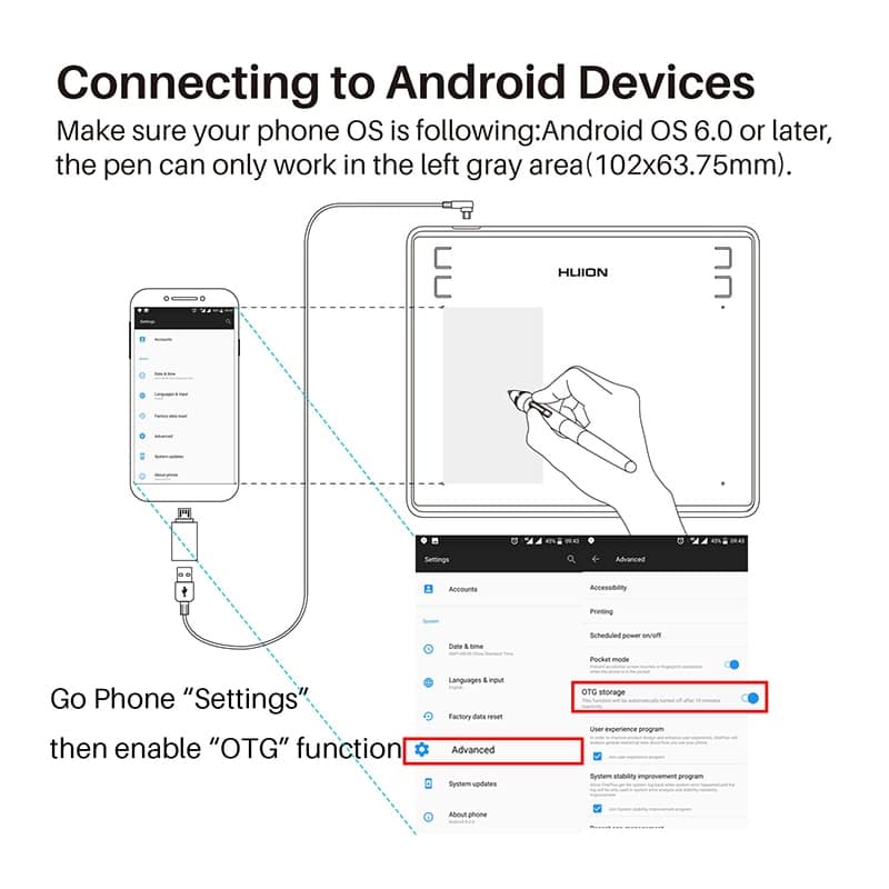 Huion HS64 graphic tablet is 258g weight and 8mm thick, supports Android mobile phone connection, as well as macOS 10.12 or later and Windows 7 or later operating system. Compatible with Microsoft Office programs like Word, PowerPoint, OneNote, and more.